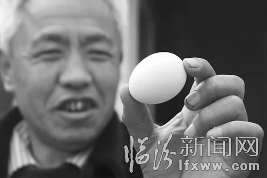 村民段保兴手拿山鸡蛋高兴地合不拢嘴。记者 郝海军 苏亚兵 摄