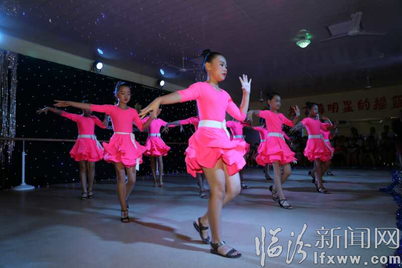 8月8日,晓雪舞蹈基地的孩子在展示自己的舞蹈才艺。