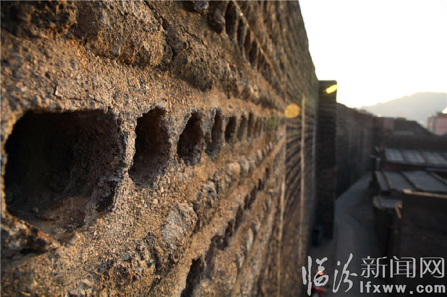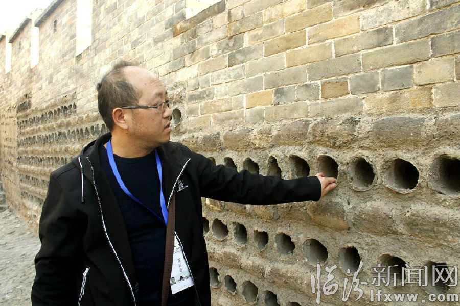 “砥洎城又被称为‘坩埚城堡’”,一听到导游的介绍,记者们脸上写满了好奇。原来是城墙里面密密麻麻、整整齐齐排列的孔洞,与“蜂窝”十分相似,而这些蜂窝都是由一个个的坩埚做成的,才被称为坩埚城墙。坩埚是中国古代炼铁用的一种耐火容器,呈圆柱形或上大下小的台柱体形,常以耐火黏土烧制而成。城墙坚不可摧,这也是砥洎城在数百年风吹雨打中仍然能够比较完整地保存下来的原因。