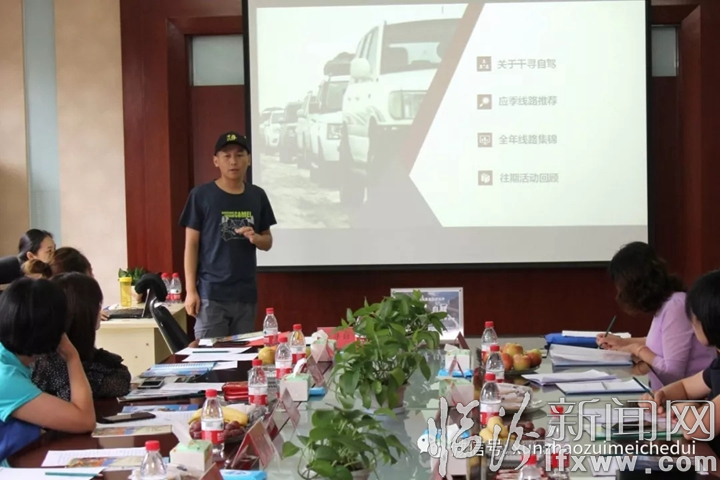 山西寻路者体育文化有限公司负责人:陈志嘉向阿克塞考察团介绍千寻自驾企业概况。