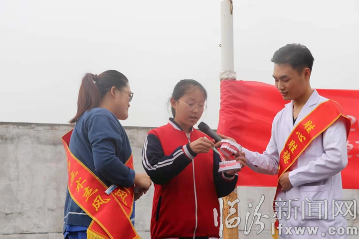 临汾新闻网讯 9月20日,第31个全国爱牙日,我市胜杰齿科的工作人员来到洪洞县白石中学开展了“口腔健康、全身健康”的爱牙日主题活动,引导孩子们从小树立口腔保健意识,爱护牙齿。