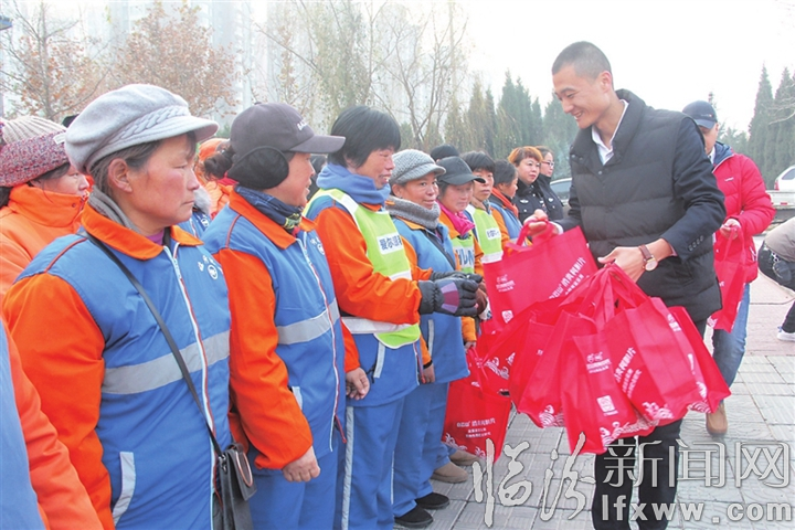临汾新闻网讯 12月13日,广州白云山和黄中药联合山西仁溢康医药连锁有限公司给尧庙环卫所的一线环卫工和工作人员送去了板蓝根冲剂、口罩等物品,并给他们讲解了如何预防流感等知识。希望他们美化城市的同时,注意身体。