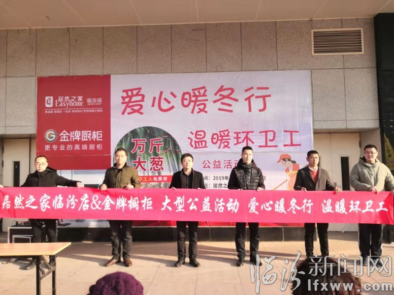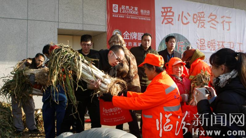 活动的发起人,居然之家金牌厨柜临汾店的负责人刘天龙介绍,他是从乡宁县大山里走出来的“85后”农村娃,大学毕业后开始了艰苦的自主创业。这两年,在党的好政策引领下,社会各界朋友的扶持下,他通过自己的双手,在生意场上打造了一片新天地,事业蒸蒸日上,一直想用实际行动来回馈社会。“每天早晨,我看到环卫工人在寒风中辛勤清扫大街的身影特别辛苦,正是有了他们日复一日的坚守,才换来了舒适干净的城市环境。我们企业表达一份爱心,特意订购了6000公斤大葱,无偿赠送给环卫工人,让他们在今冬吃葱不用花钱。”