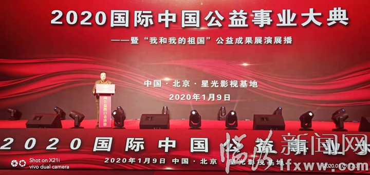 万众瞩目镁光灯下,善行中国让爱传承。日前,由中央广播电视总台《智慧中国》栏目组织的2020国际中国公益事业大典在北京举行。典礼揭晓了2019年度国际中国公益集体奖、公益先锋人物奖、公益组织奖、公益项目奖等奖项。在“向公益践行者致敬”——公益先锋人物奖颁奖单元,临汾好运来礼品有限公司董事长刘志东荣膺“2019年度国际中国公益先锋人物”,成为我市唯一获此殊荣的个人。