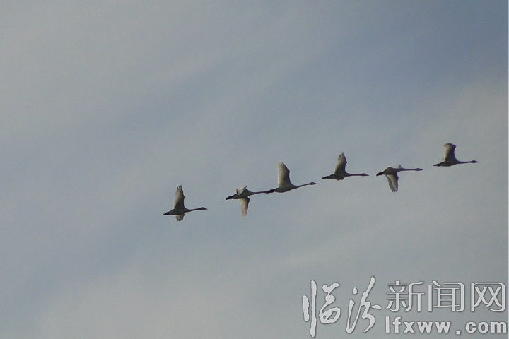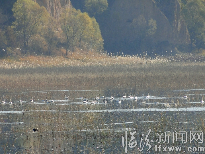 临汾新闻网讯 近日,尧都区洰河水库迎来一批特殊的“客人”,一群身姿优雅、体态婀娜的白天鹅在湖面上尽情地展现它们美丽的风姿。它们时而徘徊游弋,时而翩翩起舞,时而引吭高歌,为深秋的尧都平添了一道亮丽的风景。