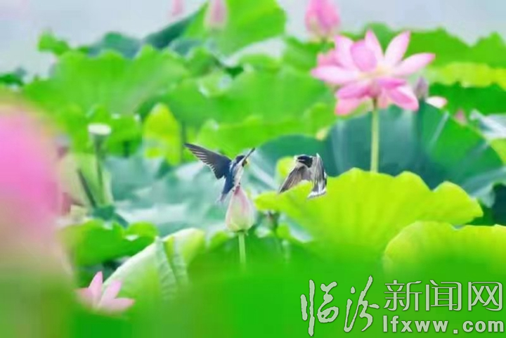 临汾新闻网讯 盛夏时节,市区锣鼓大桥汾河畔荷花娇艳绽放,燕子妈妈忙着育雏,矫健轻盈的身姿,曼妙的飞舞,画面唯美。