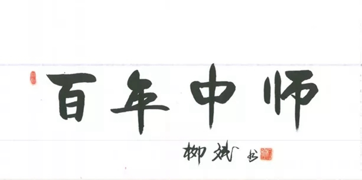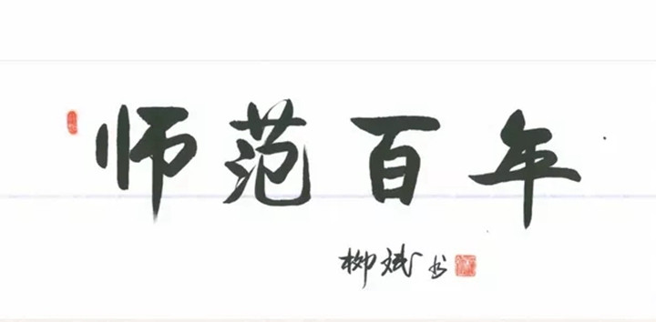 ▲柳斌为中师陈列馆题写的中师教育精神内核——“百年中师,师范百年”