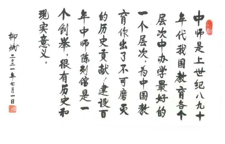 ▲柳斌为中师陈列馆题写的他对中师教育的评价语