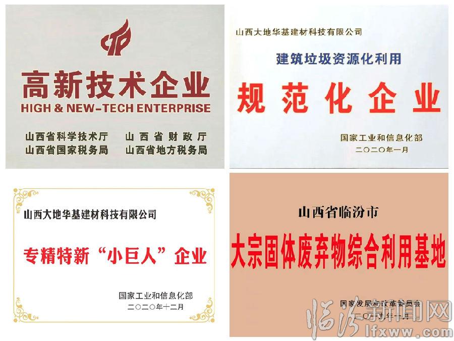 五年来,公司不断夯实高质量发展的绿色底色,把更多的绿色建材产品应用到各个领域,成为大地华基不懈的追求。公司先后被工信部授予建筑垃圾资源化利用规范化企业、专精特新小巨人企业。2019年3月,“利用建筑垃圾再生骨料制备透水混凝土路面砖”项目被国内专家鉴定为国内先进水平,获得山西省住建厅重大科技成果一等奖,2019年、2020年连续两届获得“华凯杯”混凝土材料大赛一等奖,获得固废处置及制备新型绿色建材技术方面发明专利3项,实用新型专利53项;先后承担多省、市级重点研发项目;参与编制国家标准1项,行业标准2项,地方标准 3项;拥有商标11项。