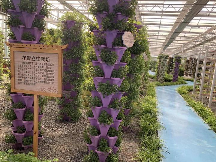 单是培栽方式就实现了多样化,吸引前来参观的人员驻足了解。花瓣立柱栽培、漏窗栽培、抱柱栽培、滚动式栽培、圆柱形气雾栽培等三十多种,培育着广东菜心、台湾枸杞、意大利生菜、玉女水果黄瓜等上百种蔬菜品种。