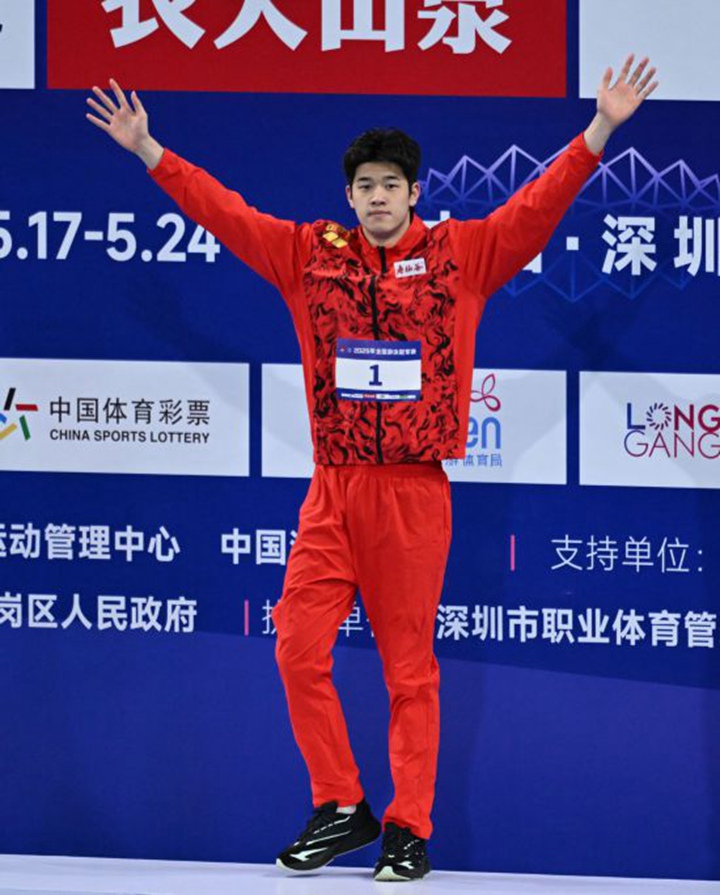 5月19日,潘展乐在颁奖仪式上。新华社记者 夏一方 摄