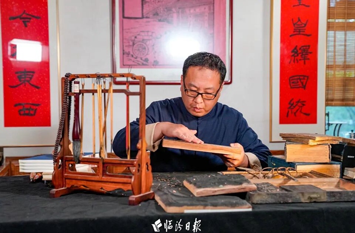 这位手艺人名叫王军,是金代雕版印刷世家“王氏中和轩”第26代传人,也是市级非遗“平水雕版印刷技艺”代表性传承人。