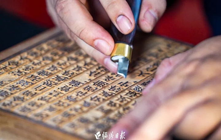 临汾新闻网讯 日前,在市区尧庙古玩城一间不起眼的工作室,一位手艺人手持刻刀,在一块梨木板上细细雕琢,随着木屑簌簌落下,文字和图案逐渐清晰……