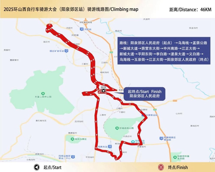 阳泉市郊区位于山西省东部,太行山中段西麓,为阳泉市市辖区之一。此地具备独特的地理位置、丰富的自然资源以及深厚的历史文化积淀。赛事路线在城市繁华街区与自然秀丽景致之间蜿蜒穿行,选手们在挑战自我的进程中,还能够欣赏到大自然的神奇造化,恰似在骑行过程中于一幅动态的画卷里穿梭。