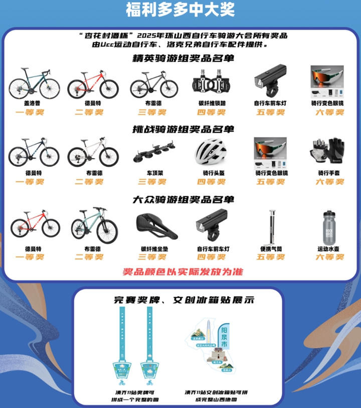 组委会为激励各位骑行选手,准备了丰厚的赛事奖励。这不仅是物质层面的回馈,更是对选手骑行实力的高度肯定。