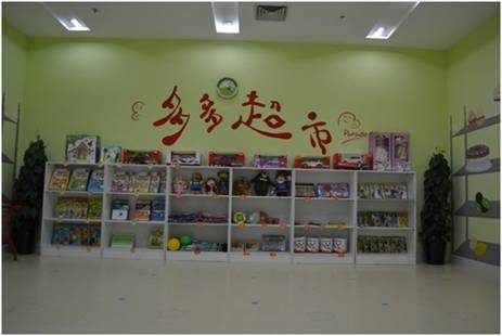 接待区有各种各样的兑换品,孩子们可以通过自己努力学习获得多多币,再用多多币兑换相应的奖品,这样更可以激发孩子的学习兴趣,从小培养孩子的竞争意识和劳动意识。