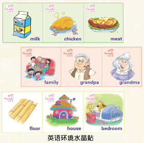 晶莹剔透的超级水晶贴,打破了传统的纸质学习卡片的概念,将家里的实质和孩子要学习的单词图片、情境句子图片、英语发音直接对应。漂亮的水晶贴不仅可以为“美国小家庭”起到装饰点的作用,更让孩子主动创造英语环境成为可能,真正实现了想贴到哪里就贴到哪里,时时处处,想说就说,想学就学,让说英语变成本能。