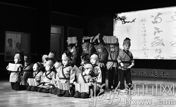 临汾新闻网讯 5月31日上午,临汾开发区爱心国际幼儿园举行庆“六一”文艺汇演。整台演出始终萦绕在“感恩”与“孝道”两大主题的浓浓氛围中,透过《爱心作业》《感恩的心》《跪羊图》等一个个精心编排的出彩节目,用寓教于乐、生动传神的手段,让中华优秀传统文化的根脉与记忆牢牢植根幼小心田。图为爱心班的小朋友在表演《三字经》吟诵。