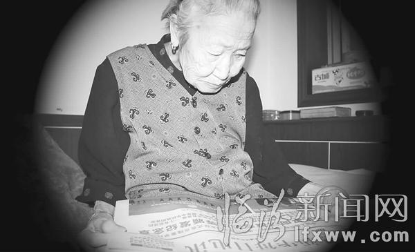 张贵玉正在看抗战胜利70周年的新闻报道