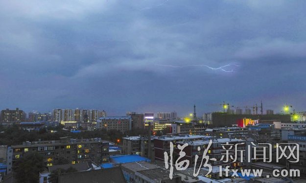 图1 16日20时许,一道闪电划过平阳上空。记者 张蕴强 摄