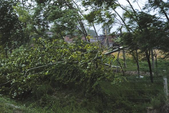 图5 洪洞罗云山下的樊村,肆虐的大风折断了碗口粗的行道树。记者 王隰斌 卢凯 摄