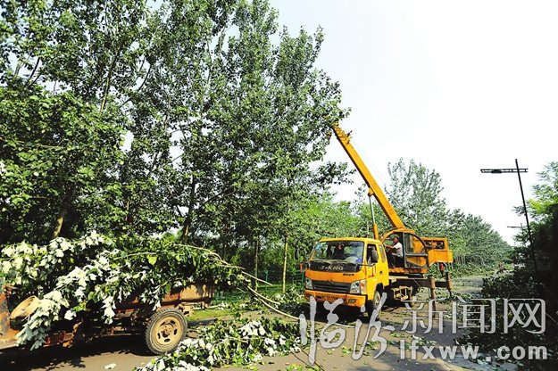 图7 17日一大早,汾河公园管理处组织工作人员对折断的大树进行清理。 记者 苏亚兵 摄