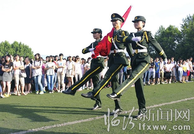 近日山西师范大学上一届“国旗班”与新一届“国旗班”在校体育场完成了新老交接仪式据了解新一届“国旗班”首次更换上“97 式制服”, 正式担当起护旗、 升旗任务。 国旗班是文明建设与爱国主义教育的窗口, 队员们以高标准完成学校日常升降旗、重大活动及节日庆典的升旗活动为光荣任务, 形成了“严格纪律、严格训练严格管理”的班风被誉为“山西师大第一班”。