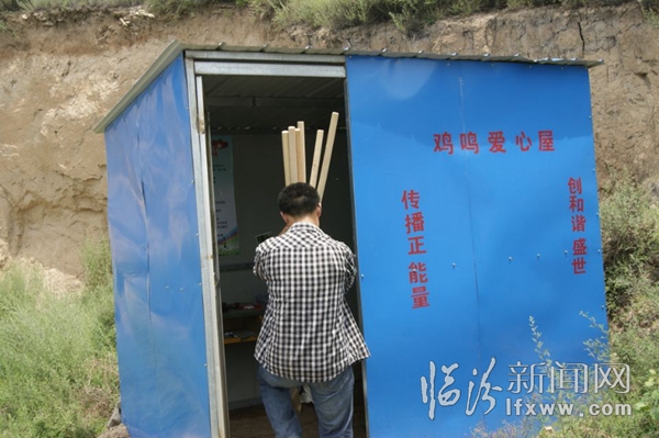 今年志愿者史新平又在此,搭建了一个鸡鸣爱心屋的彩钢房,他还给屋里配备了铁锹、铁丝、老年拐杖、雨伞、老虎钳、板子、打气筒、镙丝刀胶水补胎及修车用 、并放置了一些旧衣物,以备过往行人应急。在史新平的感召下,今年还有一些志愿者也加入了该活动。