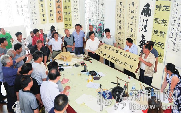 6月28日,曲沃书法家许刚在廉政书法漫画展暨笔会活动上,挥毫泼墨书写了“心不动于微利之诱、目不眩于五色之惑”提醒党员干部廉洁奉公。当日,该县纪委为喜迎中国共产党成立93周年,举办廉政书法漫画展,旨在推进党员干部作风建设,增进党员干部反腐倡廉意识,营造崇廉尚清干事创业的氛围。