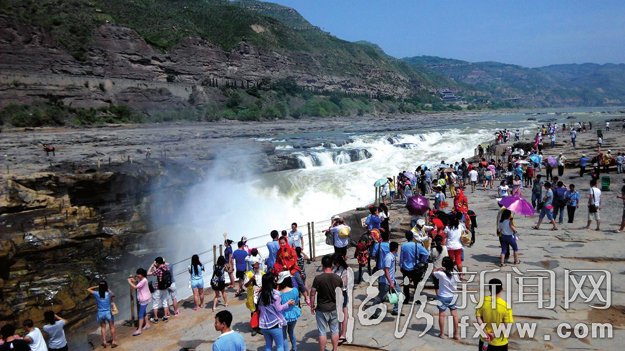 6月30日,虽然烈日炎炎,气温超过30℃,但记者在壶口瀑布景区看到,仍有数百名游客在观赏壶口雄姿。一位来自上海的游客说:在这炎热的夏季,站在黄河岸边,欣赏壶口壮美雄姿,吹着随水而来的清爽凉风,真的好享受啊!”