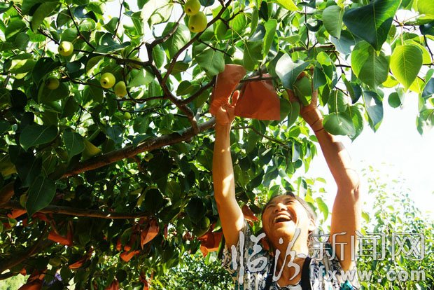 每年6月至7月初,是“中国金梨之乡”隰县梨农最忙碌的季节,夏季梨果套袋是最为关键的管理技术。隰县盛产的闻名遐迩的“玉露香”、“酥梨”等品种,之所以果面光洁、色泽匀称、汁分充沛、无害绿色,在市场独占鳌头,就是因为梨农采用了这项技术。果农顶着高温平均每天要套5000个套袋。他们说:“这一套价钱就翻倍,我们套的是金蛋蛋啊!” 郝微微 摄
