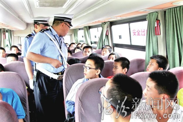 今年以来,襄汾县非常重视学生的交通安全工作,陆续投资购置了18辆专用校车用于接送学生,使校车安全管理工作步入了规范化的轨道,有效地确保了中、小学生的出行安全。图为襄汾县公安局交警大队民警正在对一辆校车进行安全检查。