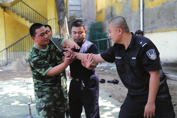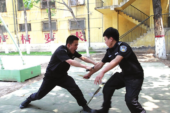 “各就各位,预备起!”一声令下,民警们快速进入备战状态,开展擒敌战术、持枪用枪、体能队列训练、应对各类突发事件的处置和反恐演练。自6月30日启动集训后,该派出所每天上午、下午各训练两个小时,并组织单警考试,同时要求每位民警都要拿出一至两个再选动作,打分合格者结业,不合格者继续训练,直至合格。