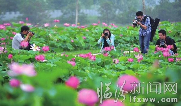 7月11日,游客在襄汾荷花公园拍摄荷花。接天莲叶无穷碧,映日荷花别样红”,连日来,在襄汾县荷花公园,千亩荷塘的荷花竞相绽放,各色荷花开得娇艳欲滴,构成了一幅绚丽多姿的夏日荷塘美景画卷,吸引了众多摄影爱好者和市民前来观光旅游采风。