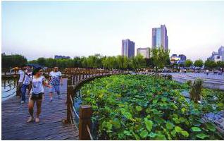 7月13日下午,一场阵雨不期而至,使得酷热的夏季变得清爽起来。傍晚时分,许多市民走出家门伴随着天边一抹靓丽的晚霞,来到公园里欣赏美景,享受阵雨给夏季带来的一丝凉意。