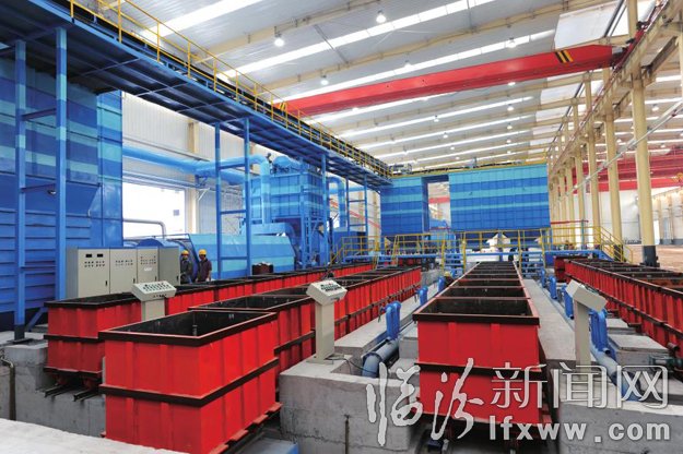 今年以来,临汾志强钢铁有限公司面对国内外钢铁市场不景气的情况,积极寻找出路,逐步摆脱传统生产模式,走精深加工的路子。总投资8.1亿元的50万吨精密铸造项目就是该公司实施转型发展的重点项目之一。目前,一期年产6.5吨消失模的两条自动化铸造生产线,5万吨V法铸造自动化生产线已投入使用;二期工程已投入试生产。该公司通过从“小钢铁”转向“大铸造”,延伸产业链条,增加了产品附加值,使吨成本由原来亏损100多元变为盈利400至800元。图为正在建设中的车间一角。记者 赵俊堂 摄