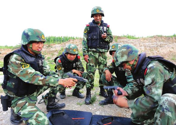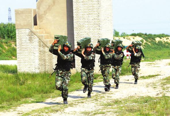 “我们坚决做到流血、流汗、不流泪,掉皮、掉肉、不掉队,以优异的成绩完成规定的训练科目……”7月14日15时,最高气温34℃,在烈日炙烤下,地上的沙砾滚热烫脚,临汾市武警支队的战士们在训练场上全副武装、荷枪实弹,身着近7公斤防弹背心,进行手枪举枪训练、狙击步枪二人协作、手步枪转换射击、400米障碍等贴近实战的训练课目,旨在砺练战士们技战术能力以及顽强的战斗精神、超常的意志品质、密切的团队意识和过硬的综合素质。
