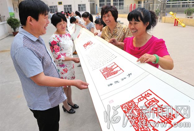 日前,我市曲沃县李村镇文敬村民间剪纸艺人鲁艳芳展出了自己创作的百米剪纸作品《晋国故事》。