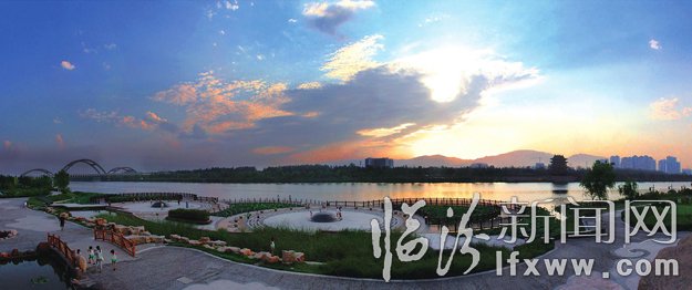 古老的汾河孕育了临汾独特的地域文化。近年来,我市以壮士断腕的决心,启动汾河生态保护与修复,全力打造“百里汾河新型经济带”,将昔日的“龙须沟”变成了如今的“民心河”,使汾河像一条碧绿的玉带穿城而过,焕发出勃勃生机。图为市区汾河新景。 王兴国 摄