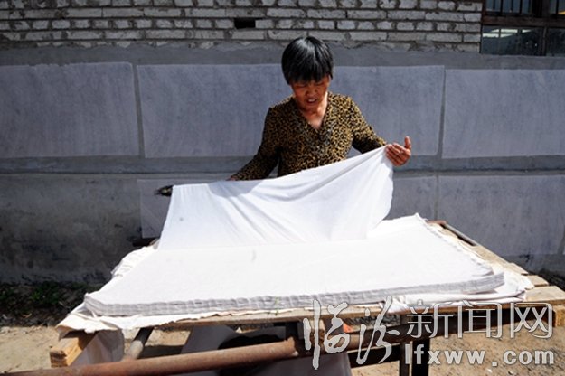 襄汾县邓庄镇西侯村帝尧麻笺厂的一位女工在晒纸。