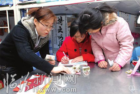 图①:12月1日,学生们将捡来的饮料瓶分类。图②:12月1日,一位学生在展示“爱心基金账户”和捐款证明信。图③:12月1日,学生们在清点卖废品的收入。图④:12月1日,学生们往收购站搬运捡回的饮料瓶。