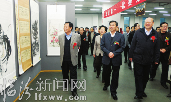 市领导罗清宇、郭新民、刘合心、常富顺、乔成家、王文英、黄翠莲、张明星、谢碧玲、丁文禄出席开展仪式,市直有关单位负责人和社会各界人士共200余人观看了图片书画展。 据了解,此次展览是我市纪念改革开放30周年系列活动的一部分。书画展共有250余幅作品,分为国画、油画、水彩画、版画等形式,作者均为国家、省、市级书协、美协会员,有参加全国及全省展览作品,也有新近创作的优秀作品。图片展分为中国复兴之路、临汾沧桑巨变两部分,以丰富多彩、翔实生动的图片记录了我国改革开放的辉煌历程,展示了临汾取得的巨大成就。 市委常委、宣传部部长黄翠莲在开展仪式上说,30年来,全国各族人民在党的坚强领导下,坚持加快发展不动摇,积极深化各项改革,全面推进对外开放,切实加强经济、政治、文化、社会和党的建设,不断夺取中国特色社会主义建设的新胜利,谱写了中华民族自强不息、开拓进取的壮丽篇章。改革开放的30年,也是我市抢抓机遇、加快发展的30年。市委、市政府带领全市人民,高举中国特色社会主义伟大旗帜,坚持以邓小平理论和“三个代表”重要思想为指导,深入贯彻落实科学发展观,与时俱进,开拓创新,使得临汾现代化建设取得了前所未有的辉煌成就,呈现出经济繁荣、政治稳定、文化发展、社会进步、人民生活蒸蒸日上的良好局面。 黄翠莲说,举办此次图片书画展,目的在于回顾历史、坚定信心、放眼未来、抢抓机遇,更好地推进改革开放和现代化建设事业。此次图片书画展及改革开放30周年系列活动,将进一步坚定全市干部群众坚持科学发展、促进社会和谐的信心和决心,将进一步激励全市人民以昂扬向上、锐意进取、奋发有为的精神状态,为实现转型发展、安全发展、和谐发展做出新的贡献。