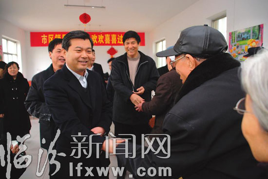 图为罗清宇在尧都区中心敬老院慰问。 本报记者魏华摄
