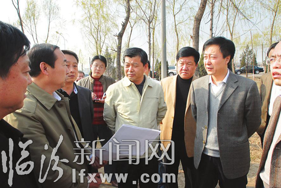 图为罗清宇在霍州煤电集团开元小区建设工地调研时的情景。本报记者 闫锐鹏 摄