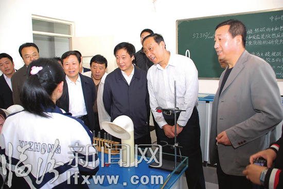 图为谢海在霍州一中调研。 本报记者 魏华 摄