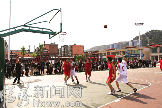 4月28日,蒲县举办了“迎五一”职工运动会。 篮球、乒乓球、象棋等丰富多彩的比赛项目,活跃了广大职工的文体生活。图为该县开展篮球比赛时的情景。 冯挺摄