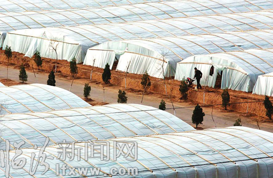 近年来,古县安吉村不断加大产业结构调整力度,在逐步关闭小型煤焦企业的同时,积极引导农民种植大棚菜。如今,该村的大棚菜种植已初具规模,成为该村的特色产业。图为该村的蔬菜大棚基地。 张旦摄 来源:临汾日报