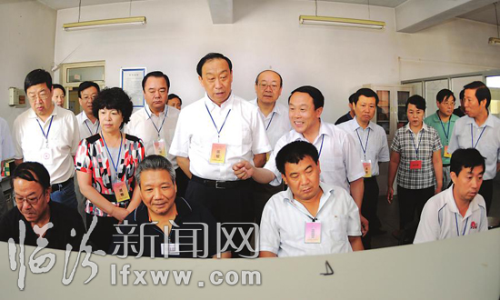 图为谢海等市领导在临汾一中考点巡视。 本报记者 李虎威 摄
