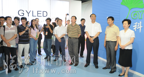 图为谢海同第四届全国网络媒体记者在光宇半导体照明有限公司参观。本报记者 李虎威 摄