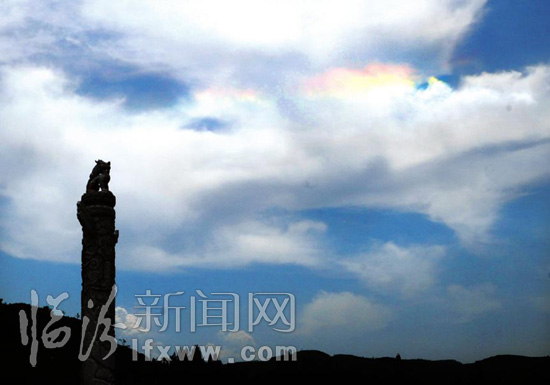 6月12日上午,尧陵上空出现似龙形七彩祥云,大约持续了五分钟后渐渐淡去。据当地人称,这种奇异现象很少见到。 原载《人民网》